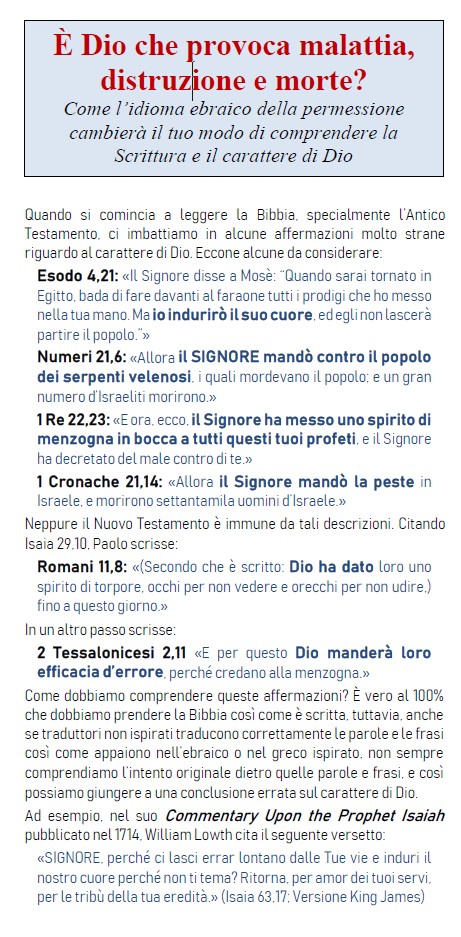 «Le tenere compassioni del nostro Salvatore si risvegliarono per l’umanità decaduta e sofferente. Se volete essere Suoi discepoli, dovete coltivare compassione e simpatia. L’indifferenza alle disgrazie umane deve lasciare il posto a un vivo interesse per le sofferenze degli altri. La vedova, l’orfano, il malato e il morente avranno sempre bisogno di aiuto. Ecco un’opportunità per proclamare il Vangelo—per mostrare Gesù, la speranza e la consolazione di tutti gli uomini. Quando il corpo sofferente è stato soccorso e avete dimostrato un vivo interesse per gli afflitti, il cuore si apre e potete versare il balsamo celeste. Se guardate a Gesù e attingete da Lui conoscenza, forza e grazia, potete trasmettere la Sua consolazione agli altri, perché il Consolatore è con voi.» (Counsels on Health, p. 34)